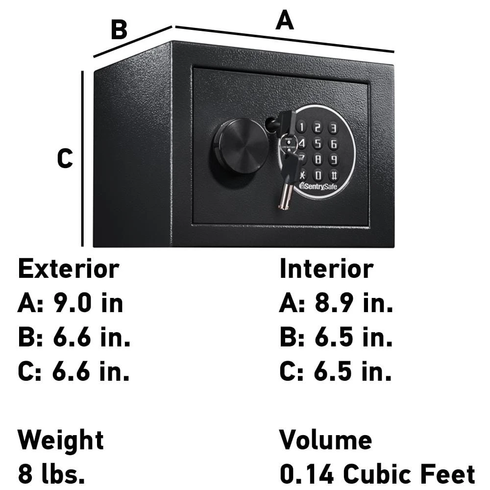 - Exterior: 9.0 in. W x 6.6 in. D x 6.6 in. H; interior: 8.9 in. W x 6.5 in. D x 6.5 in. H; extra small 0.14 cu. ft. capacity; weighs 8.1 lbs.