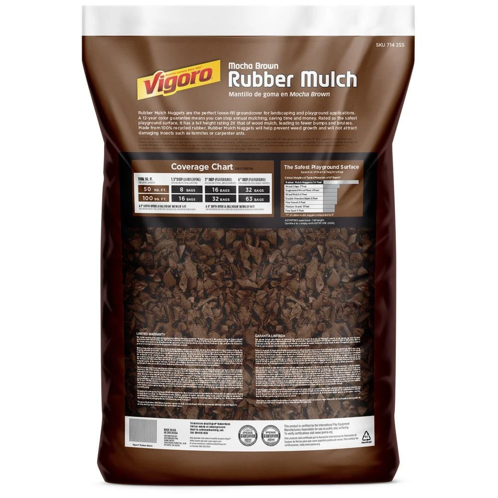 - Eco-friendly mulch made from 100% recycled rubber