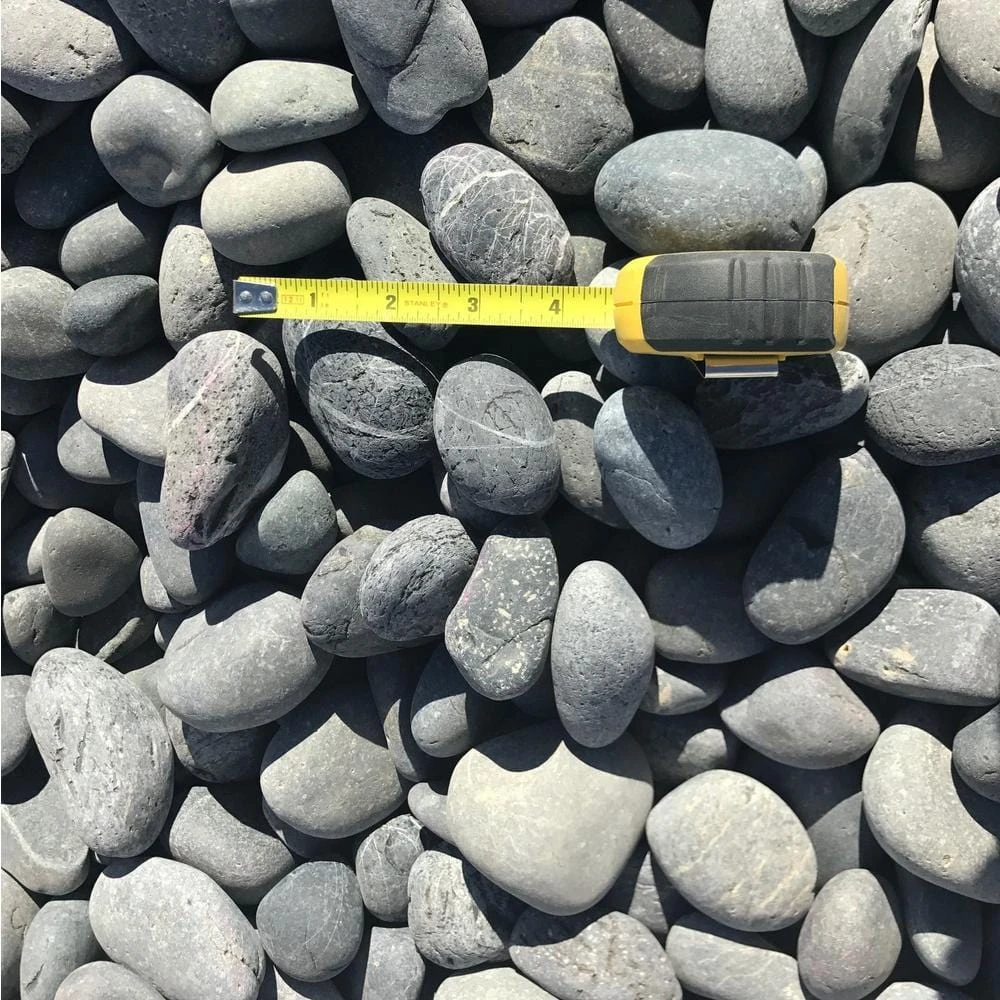 - Product consists of 40 bags of 75 lb. 1 in. to 2 in. black beach pebble shipped on a pallet (3,000 lbs. of pebble)
