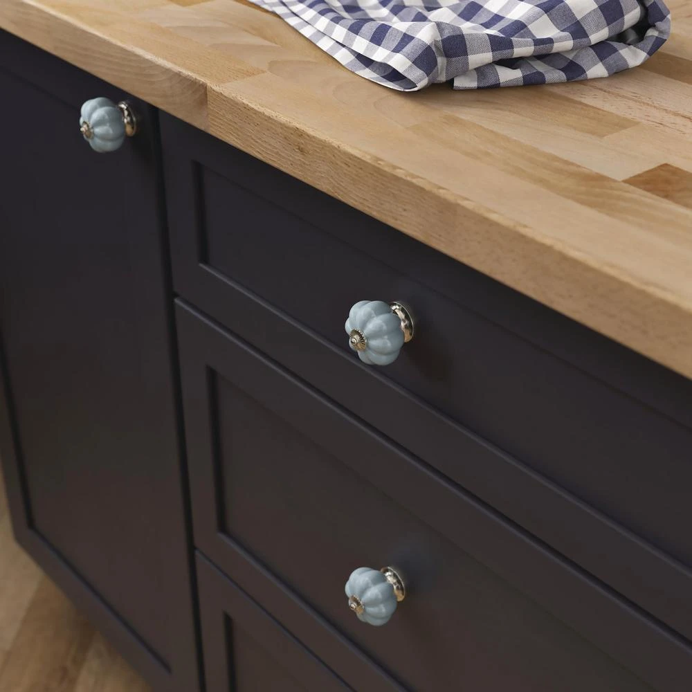 The Liberty 1-1/2 in. Ceramic Melon knob adds a touch of casual charm to your space. The unique design pairs with today on trend colors to provide a look that is fresh and stylish. Ideal for bathroom vanities or furniture makeovers.