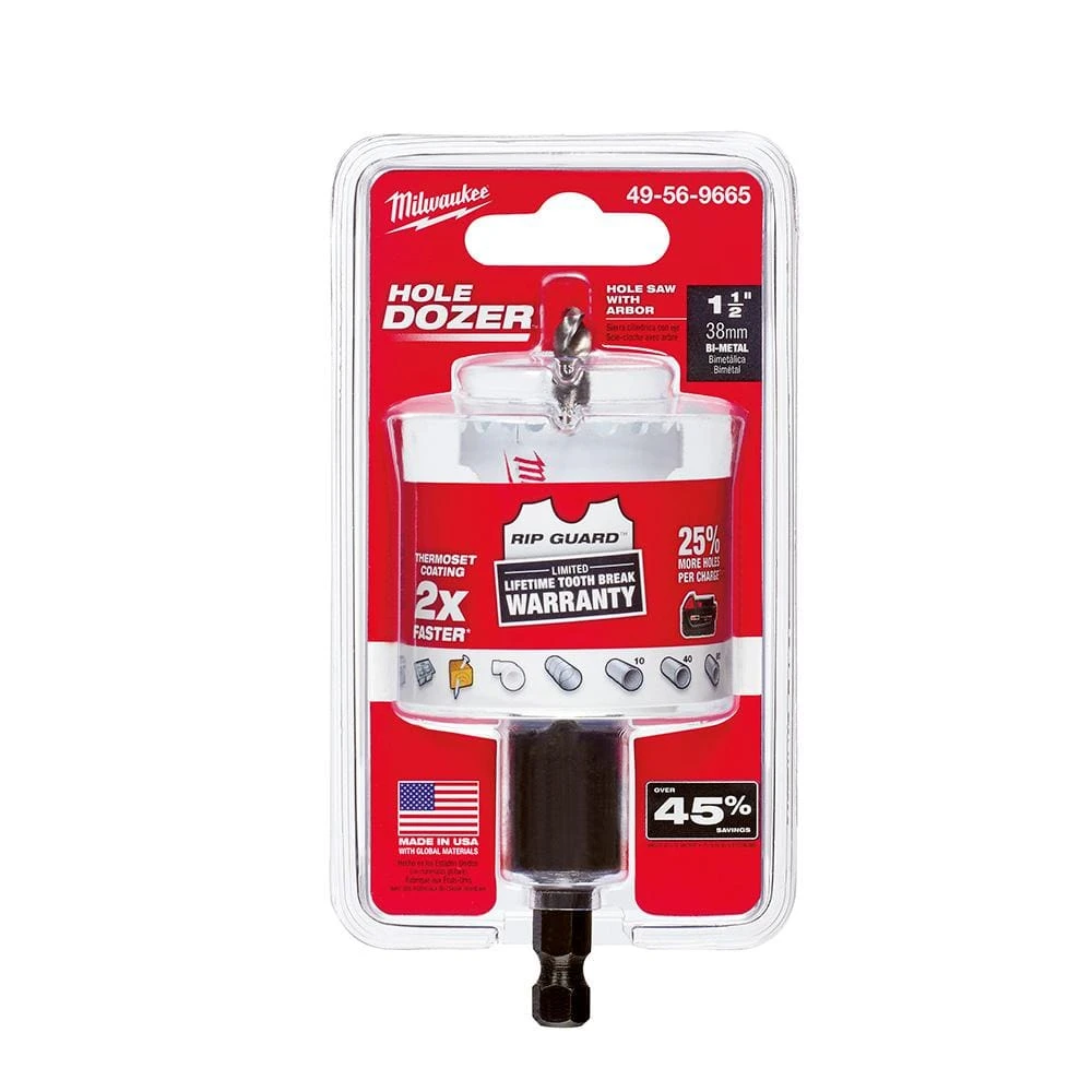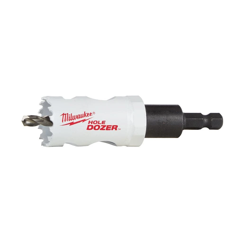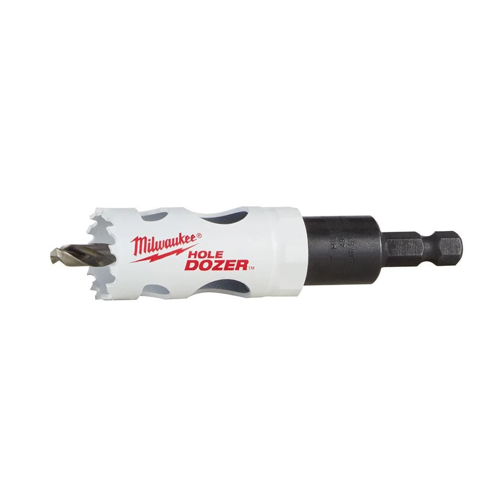 The Milwaukee Hole Dozer Hole Saw features Rip guard, the strongest tooth form in the industry, backed by the Rip guard limited lifetime tooth break warranty. Each tooth is built with more steel behind the cutting edge for added strength. The Rip Guard warranty on tooth breaks is a first for the hole saw industry. The added tooth strength along with 8% cobalt give added life to the teeth, allowing for increased productivity on the jobsite, as well as continued hole quality. The Hole Dozer includes Plug Jack, an all access slot design that allows for full access during plug removal. The Plug Jack gives access lower into the cup for thick material and higher towards the teeth for thin material. With multiple positions to apply leverage and better plug access, Plug Jack increases productivity and eliminates wasted downtime between holes. For fast, tool-free change-outs, use Milwaukee’s universal Quick-Change Arbors. 49-56-7210, 49-56-7240, 49-56-7250 and 49-56-9100.