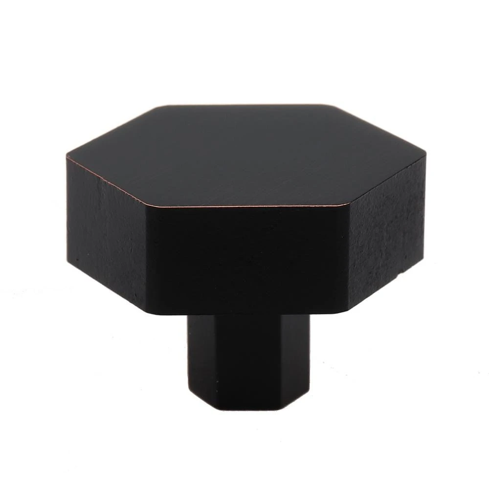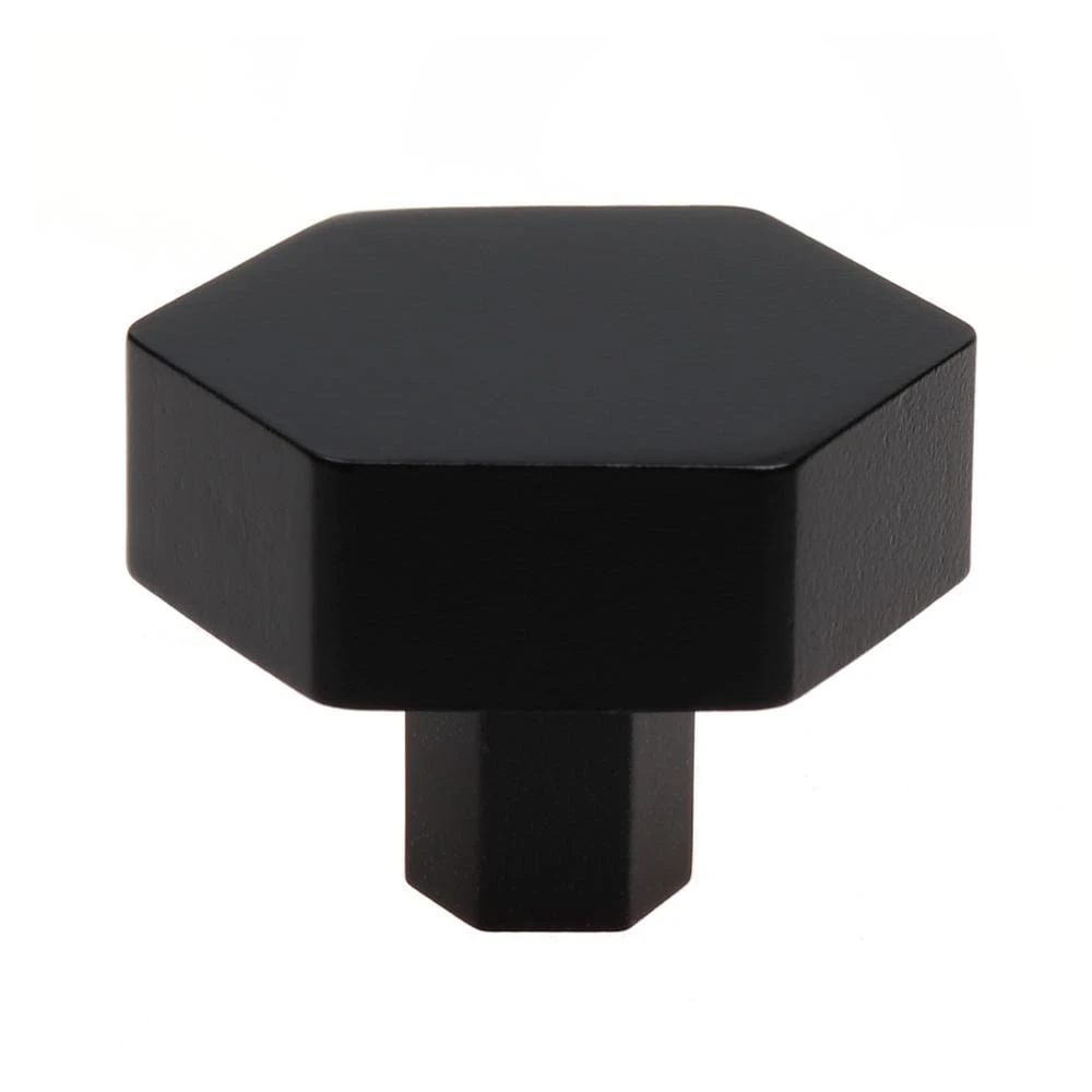 This bold heavy-weight hexagon knob will give you a modern look in your kitchen, laundry room or bath. The thick hexagon shape gives you an easy-to-grip handle. Matching pulls are also available.