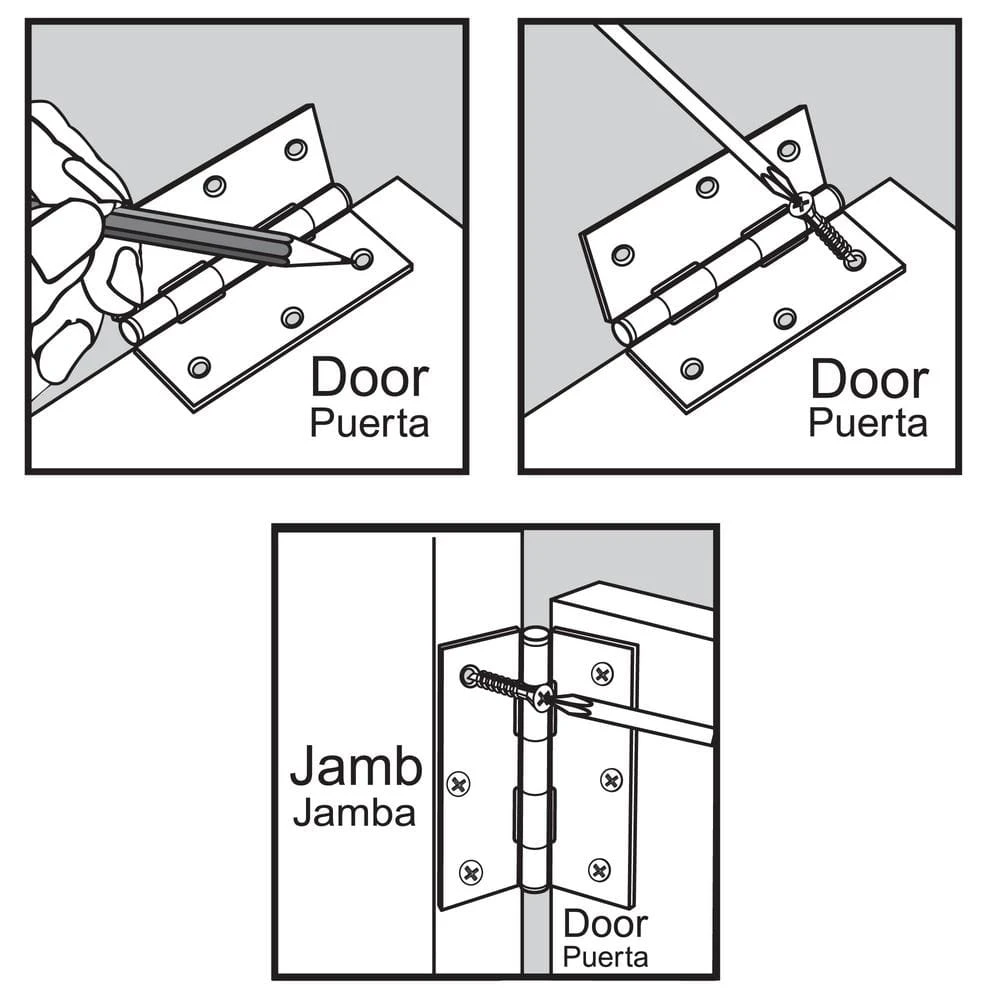 The Everbilt 1.35 in. x 1.6 in. Non-Removable Pin Narrow Utility Hinges (2-Pack) features a five knuckle full mortise design. The non-removable pin provides extra security. Easy to install.