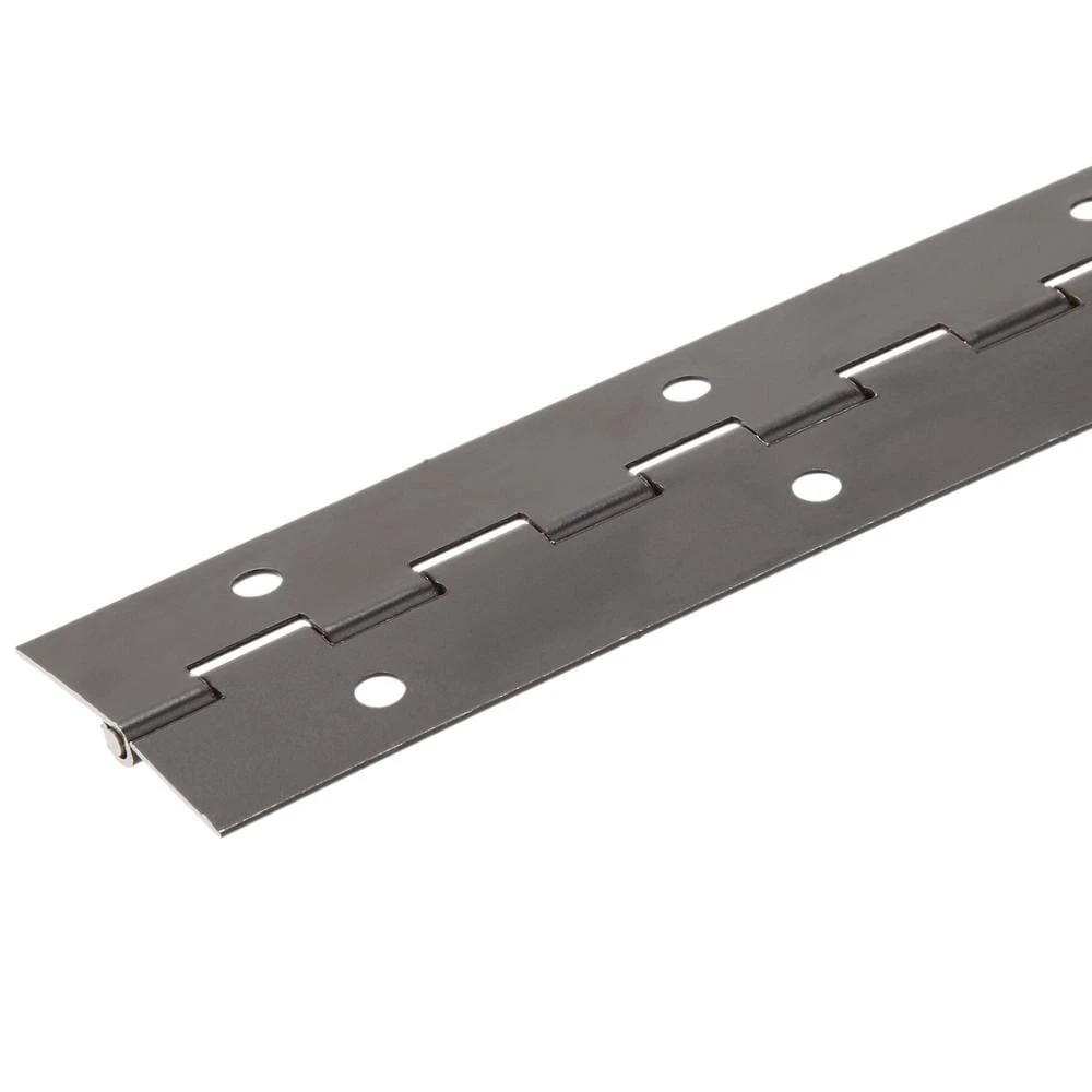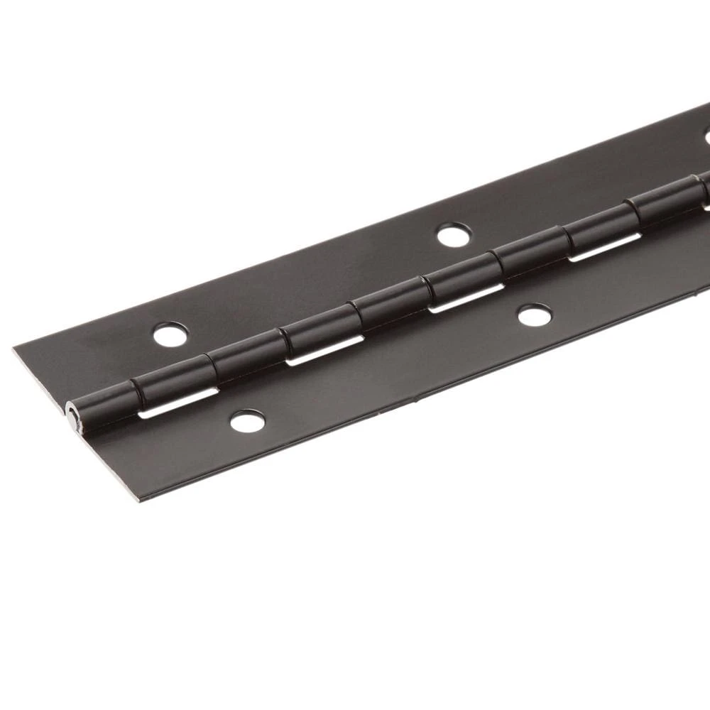 This 1-1/2 in. x 30 in. continuous hinge by Everbilt can be cut to the length needed for your project and is ideal for folding tables, cabinets, tool sheds, chests and cabinets. The steel-constructed hinge is extremely durable and prevents misalignment. It includes screws, and there are 2 in. spacings between each screw hole.