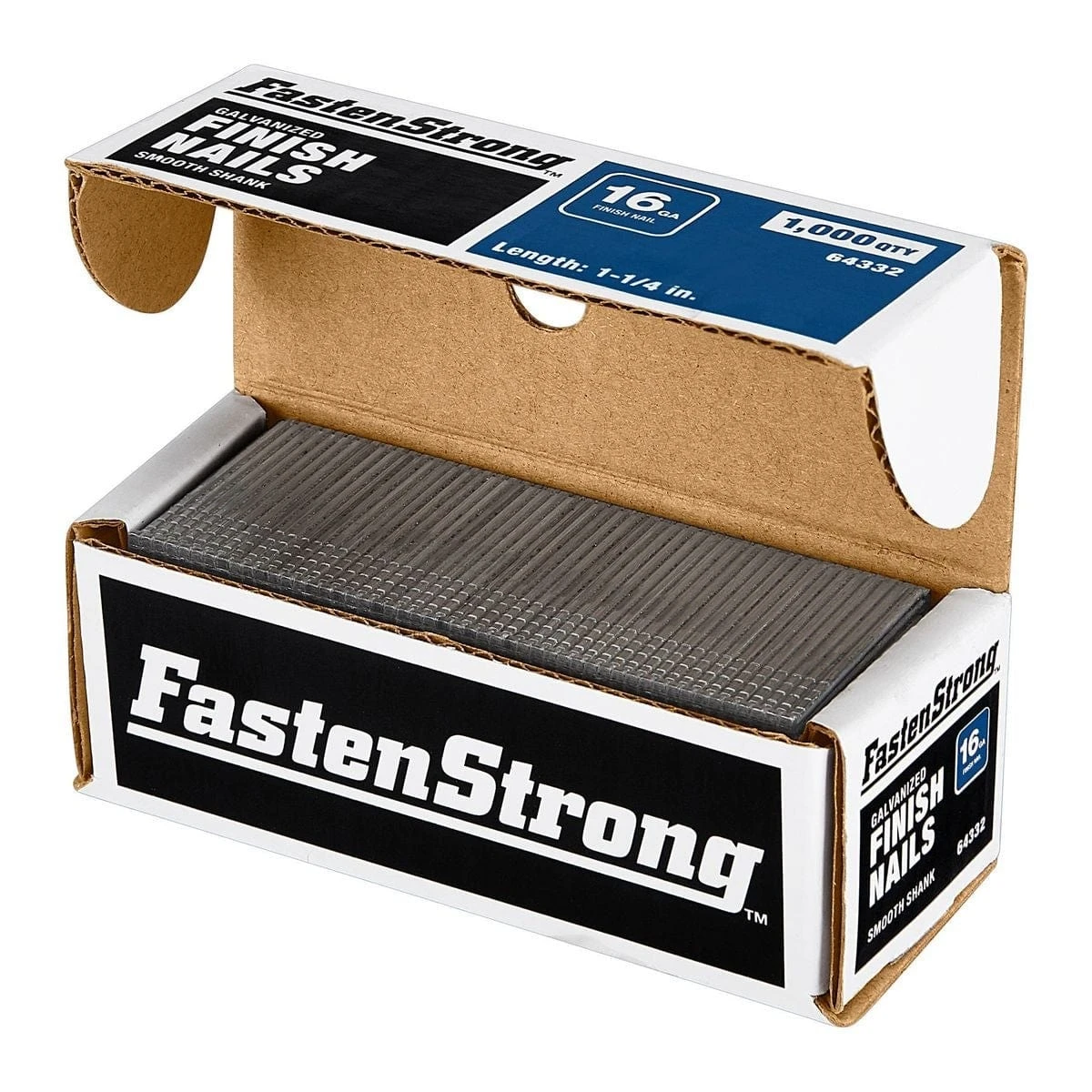 FastenStrong® galvanized finish nails have a slight head to leave minimum size hole. The nails feature adhesive collation and a smooth shank.