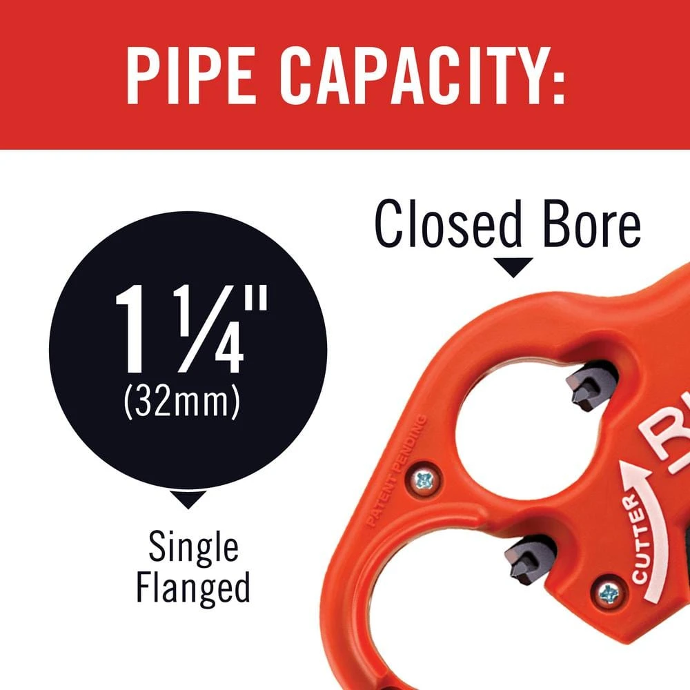 - Tubing cutter has a 1-1/4 in. single-flanged or 1-1/2 in. double-flanged outer diameter capacity