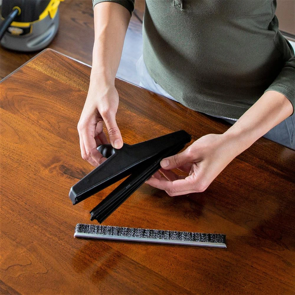 This RIDGID vacuum attachment is ideal for wet pick-up on large, hard surfaces. The VT1404 combination pack features a 10 in. wide nozzle for both wet and dry use. The nozzle base can house either the brush strip or squeegee insert and can be positioned either forward or rear facing to best accommodate both pulling or pushing motions. The brush strip and squeegee insert can also be removed completely, allowing the tool to function as a traditional dry nozzle for larger debris pick-up. This wet dry vac accessory adapts to vacuums with a 1.25-in. diameter hose.