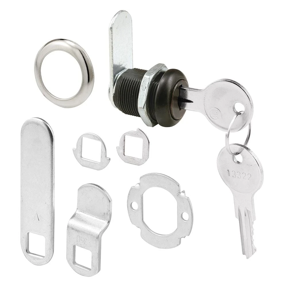 - Contains 1 lock, 3 cams, 1 trim collar, 1 spur washer, 2 rotation washers, 1 lock nut and 2 keys