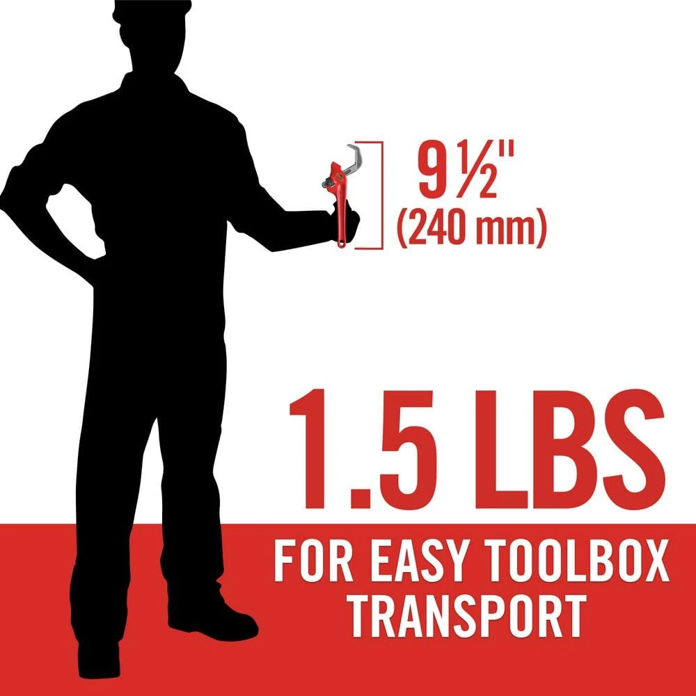 The RIDGID E-110 Hex Wrench, featuring an innovative jaw design, provides a multi-sided, secure grip on all hex nuts, square nuts, unions and valve packing nuts. Its offset design has an extra-wide opening that is ideal for securing drain nuts on sinks and tubs. The wide jaw also allows the hex pipe wrench to easily fit around pipes ranging from 1-1/8 in. to 2-5/8 in. The hex wrench has thin, smooth jaws that slip into tight spaces for on-the-job convenience.