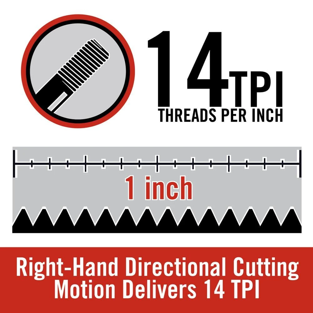 - Right-hand directional cutting motion delivers 14 TPI