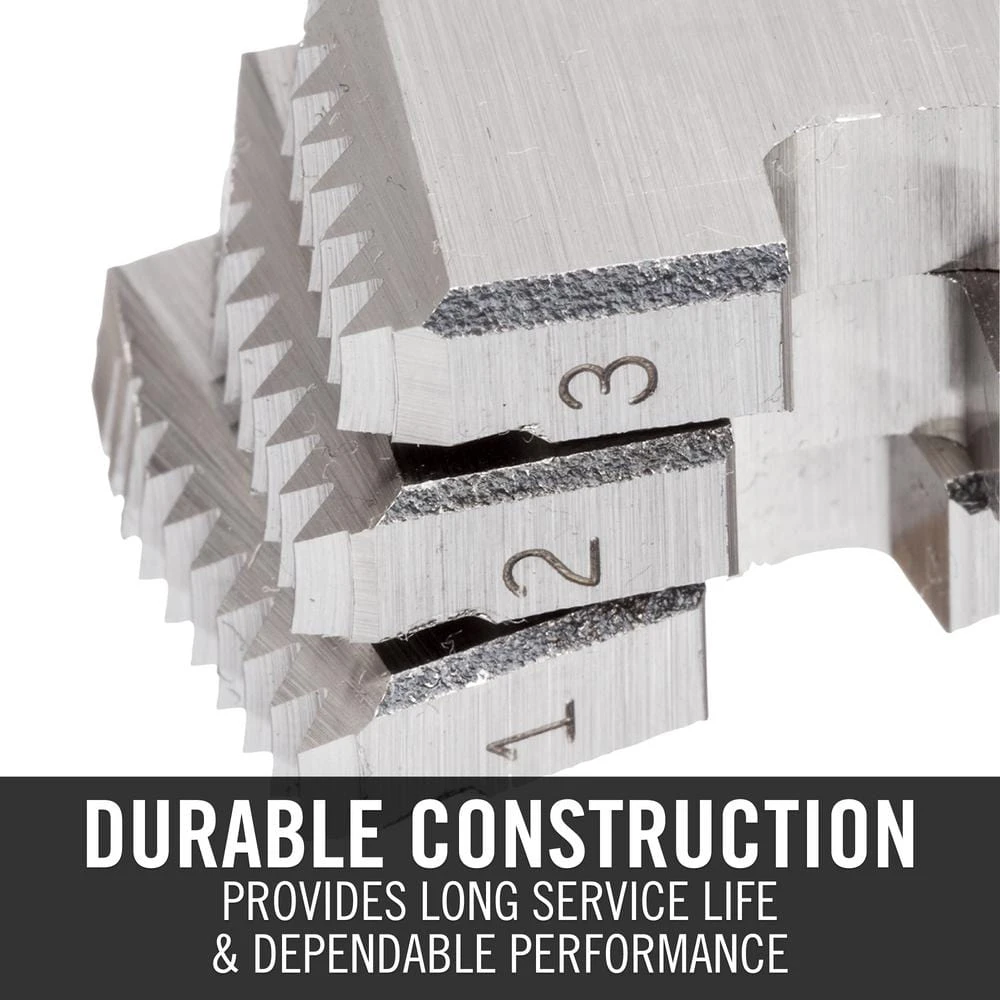 - Threading dies are for 1/2 in. (NPT) nominal pipe