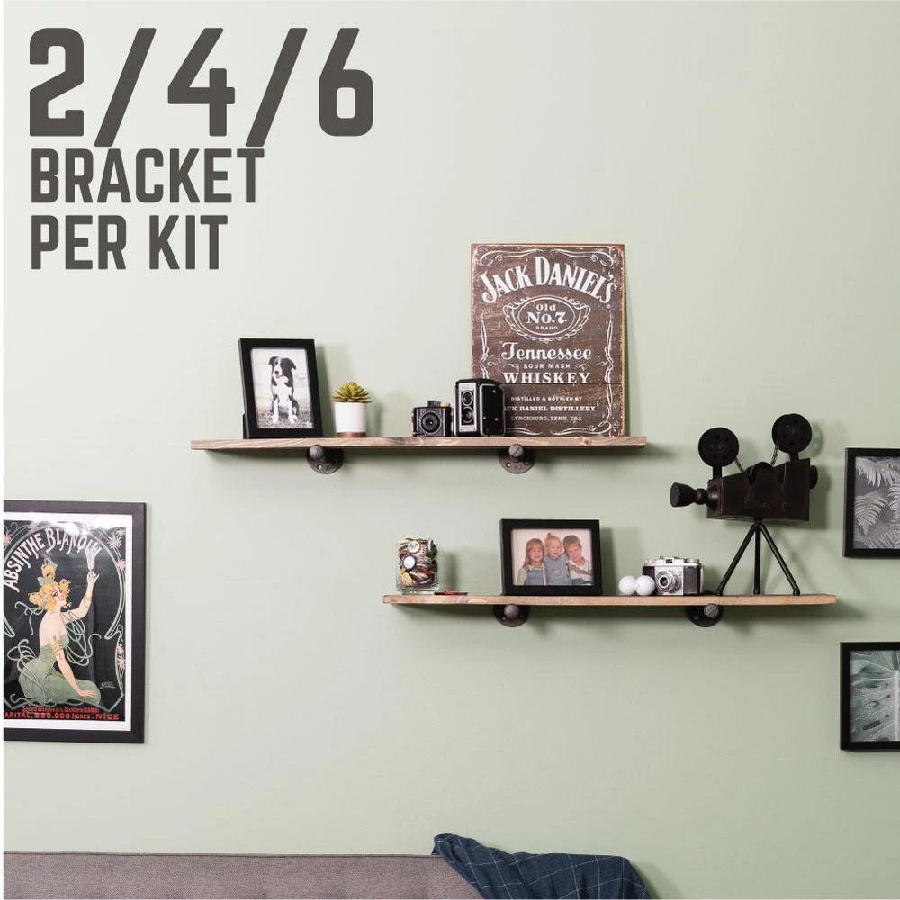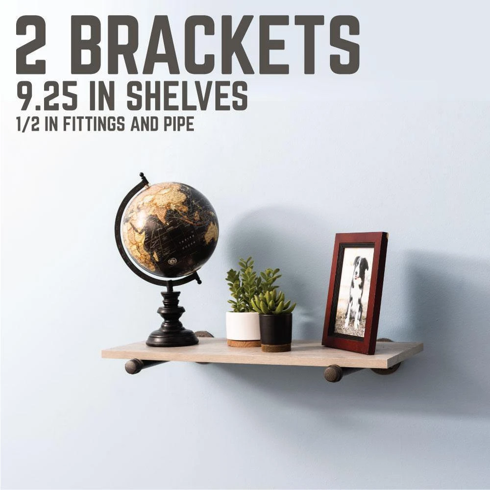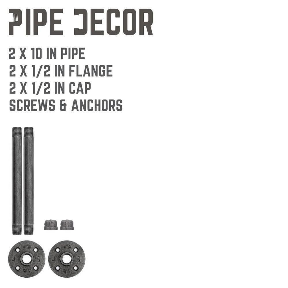 Pipe Decor, 10 in. straight industrial shelf brackets in a set of two. Add eye-catching style to your new set of shelves with these heavy-duty, pipe shelving brackets. Cast iron fittings and black steel pipe pair impeccably with woods of various colors and sizes. Treat your visitors to your sense of style and attention to detail. These Pipe Decor brackets fit a surprising number of looks and aesthetics, including steampunk lighting, industrial, factory, French country farmhouse, vintage, retro reclamation, and D-I-Y. You will know Pipe Decor parts and accessories when you hold them. Beauty and beast. Strength and style. This is real industrial pipe for your creative design needs. Accept no substitutes. All our pipe and fittings come coated in a light industrial grease to prevent rusting. Clean and seal each piece, before assembly, to ensure that they stay rust-free. After cleaning, seal the pipe with polyurethane spray to protect it from rust and scratches.
