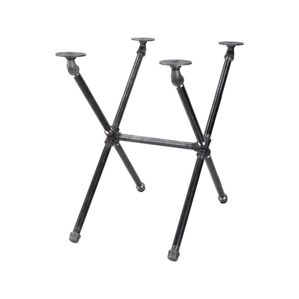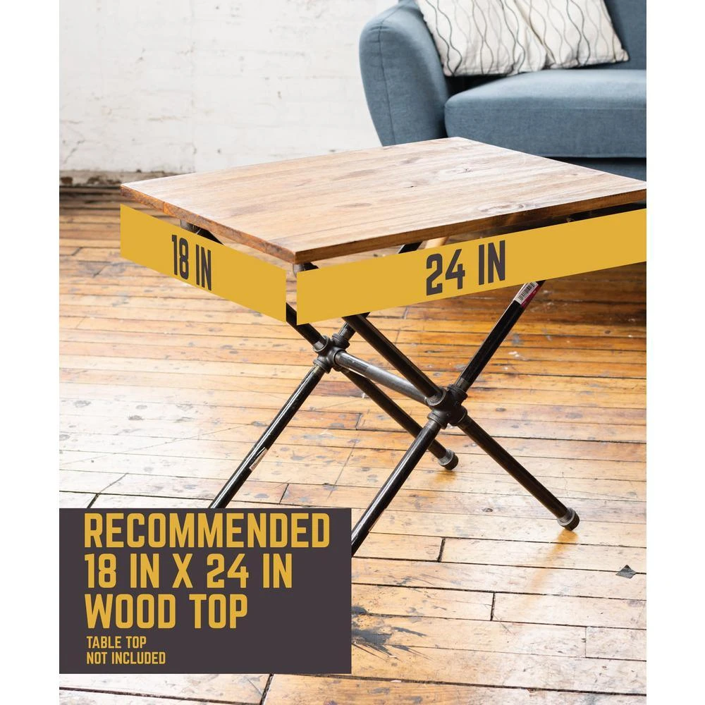 The Criss Cross end table is our nod to campaign style. This easy to assemble end table, with its classic Roman Campaign design, brings the essence of antiquity to modern industrial design. Strategically flank your sofa or bed with a pair of these fine tables and rest easy. Authentic steel pipe, when paired with wood, fits in nicely with French and Industrial Farmhouse, Mid-Century Modern, DIY, Vintage and Rustic design. This kit uses a combination of 1/2 in. pipe and comes with all necessary fittings and flanges needed for assembly. Screws and a set of step-by-step instructions are also included for your convenience. The wood tabletop pictured is not included. Choose your own tabletop to create a look that is uniquely yours. Glass tops are not recommended as they cannot be attached to the base.