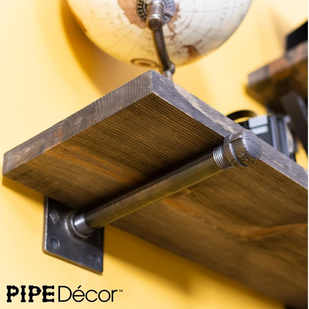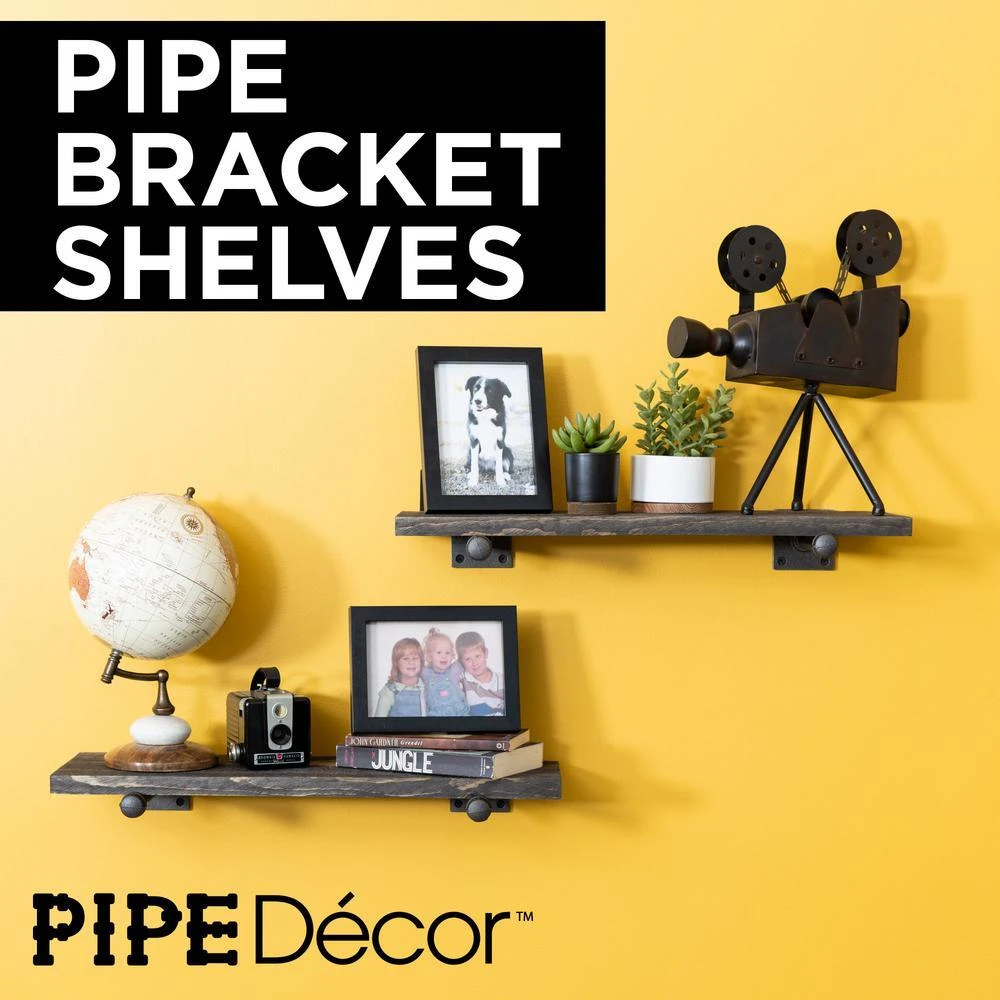 Pipe Decor’s classic straight shelve brackets with on-point square flanges will add eye-catching style to your new set of shelves. Cast iron fittings and black steel pipe pair impeccably with woods of various colors and sizes. Treat your visitors to your sense of style and attention to detail. These Pipe Decor brackets fit a surprising number of looks and aesthetics, including steampunk lighting, industrial, factory, French country farmhouse, vintage, retro reclamation, and D-I-Y. You will know Pipe Decor parts and accessories when you hold them. Beauty and beast. Strength and style. This is real industrial pipe for your creative design needs. Accept no substitutes. All our pipe and fittings come coated in a light industrial grease to prevent rusting. Clean and seal each piece, before assembly, to ensure that they stay rust-free. After cleaning, seal the pipe with polyurethane spray to protect it from rust and scratches.