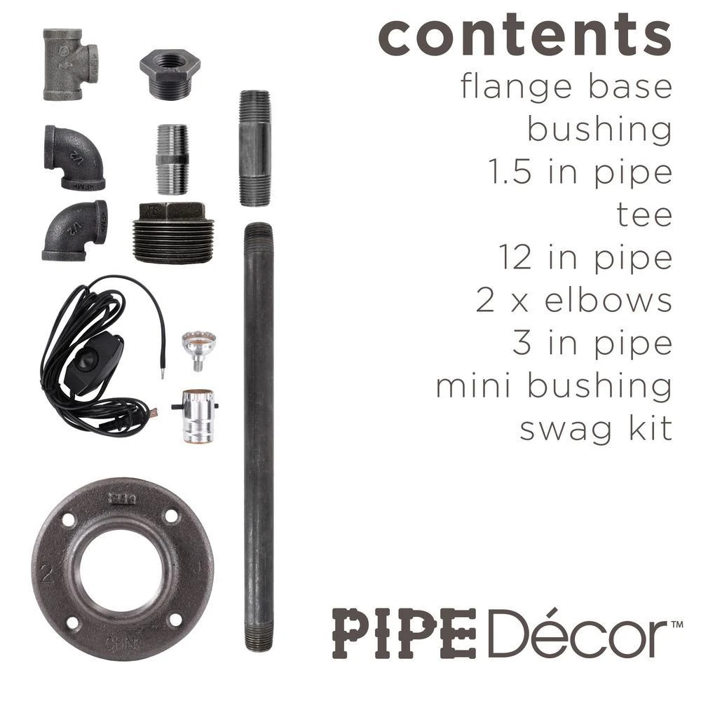 Made of authentic plumbing pipe the Pipe Decor Reader table lamp kit features malleable iron fittings and actual steel pipe. The included swag kit offers you the ability to adjust your bulb’s brightness for reading comfort. The industrial minimalist design will make a good talking point for your book club. We recommend pairing your new lamp with an Edison bulb to accentuate the rustic aesthetic. Grab your favorite book and relax. You will know Pipe Decor parts and accessories when you hold them. Beauty and beast. Strength and style. This is real industrial pipe for your decoration and designs. Accept no substitutes. All our pipe and fittings come coated in a light industrial grease to prevent rusting. We highly recommend that you clean and seal each piece, before assembly, to ensure that they stay rust-free. Sealing the pipe with polyurethane spray will protect it from rust and scratches.