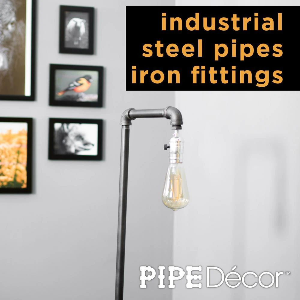 This floor lamp kit was designed for the avid reader. Made of authentic plumbing pipe we were happy to add this Reader floor lamp to our collection of industrial vintage lamps. Featuring malleable iron fittings and actual steel pipe our lamp is a comfortable 56 in. high and offers you the ability to adjust the bulb brightness for reading comfort. Pipe Decor’s patented 6-way malleable iron cross makes this design a reality. We recommend pairing your new lamp with an Edison bulb to accentuate the rustic aesthetic. You will know Pipe Decor parts and accessories when you hold them. Beauty and beast. Strength and style. This is real industrial pipe for your decoration and designs. Accept no substitutes. All our pipe and fittings come coated in a light industrial grease to prevent rusting. We highly recommend that you clean and seal each piece, before assembly, to ensure that they stay rust-free. Sealing the pipe with polyurethane spray will protect it from rust and scratches.