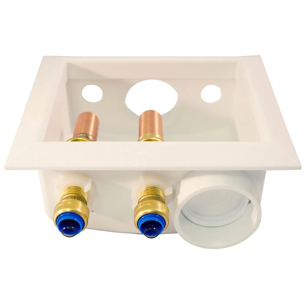 The Tectite by Apollo Washing Machine Outlet Box includes a 1/2 in. Push-To-Connect washing machine valves and can be used to connect copper, CPVC or PEX lines. Ideal for installations of washing machines. Integrated Water Hammer Arrestor is designed to protect plumbing systems and fixtures from water hammer. Tectite by Apollo Push-To-Connect fittings are the fastest, cleanest, and simplest way to connect copper, CPVC, PE-RT and PEX pipe without the use of tools, solder, open flame or glue. Simply insert the pipe to allow the high-strength stainless steel teeth to grip the pipe securely against the specially designed O-ring. Fitting removal and reuse is just as simple using a simple demount clip (sold separately).