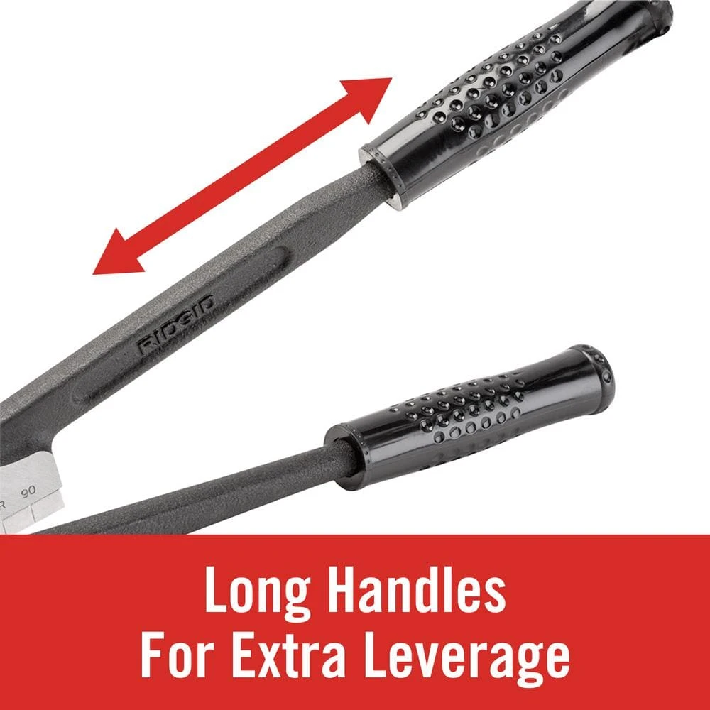 - Tubing bender features offset cushion grip handles for comfort when forming 180° bends