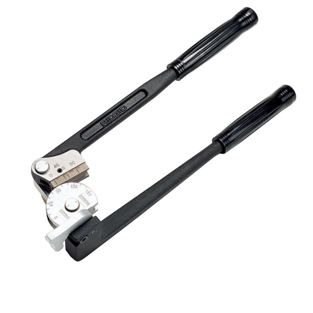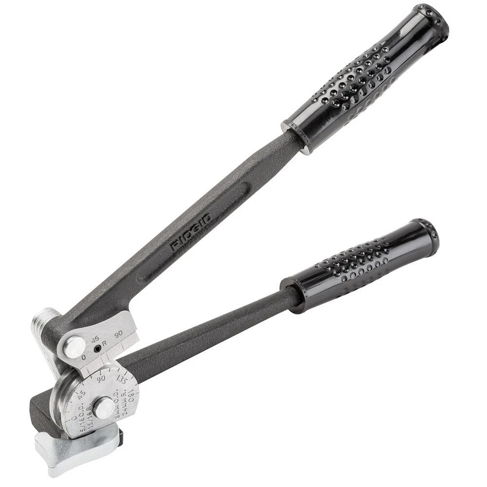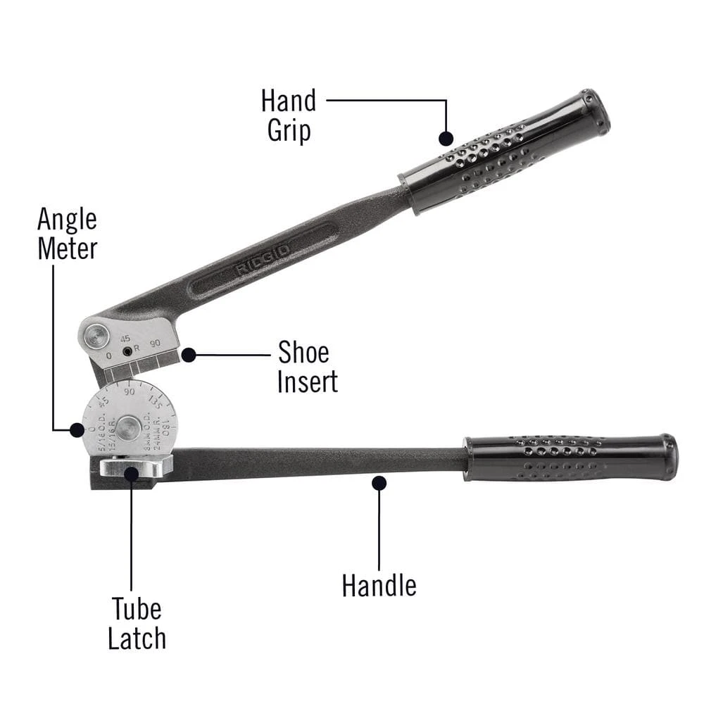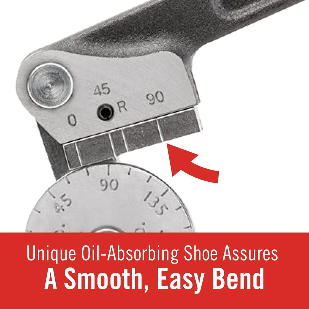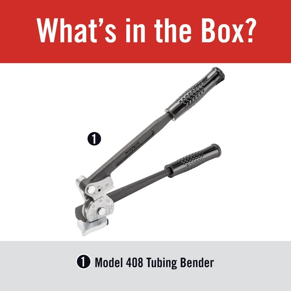 Designed for efficient and easy metal tube bending, the RIDGID Model 408 Tube Bender is a must-have for pipefitters. The tubing bender is ideal for bending annealed copper, steel and stainless steel with a thickness less than or equal to 0.06 in. to a maximum of 180°. Offset cushion grip handles are built for comfort when forming 180° bends. A 90° start angle and unique oil-absorbing shoe minimize bending effort while forming accurate bends. The pipe bender has a marked angle meter that lets you make repeatable, consistent bends with clearly marked 15° increments. The Model 408 tubing bender is compatible with 1/2 in. Dia tubing.