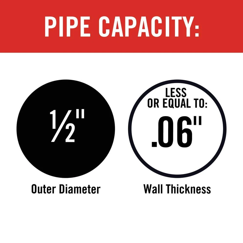 | Maximum pipe size capacity (in.) | 0.5 |