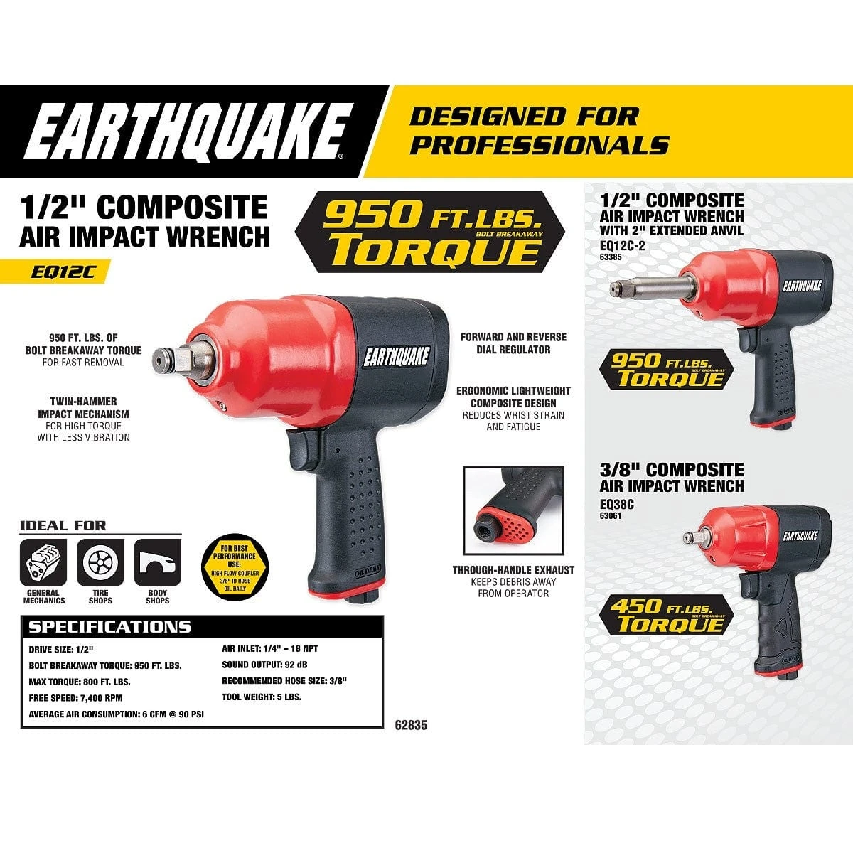 This professional grade air impact wrench has a lightweight composite body to reduce strain. The composite impact wrench delivers 950 ft. lbs. of bolt breakaway torque to get tough jobs done fast.