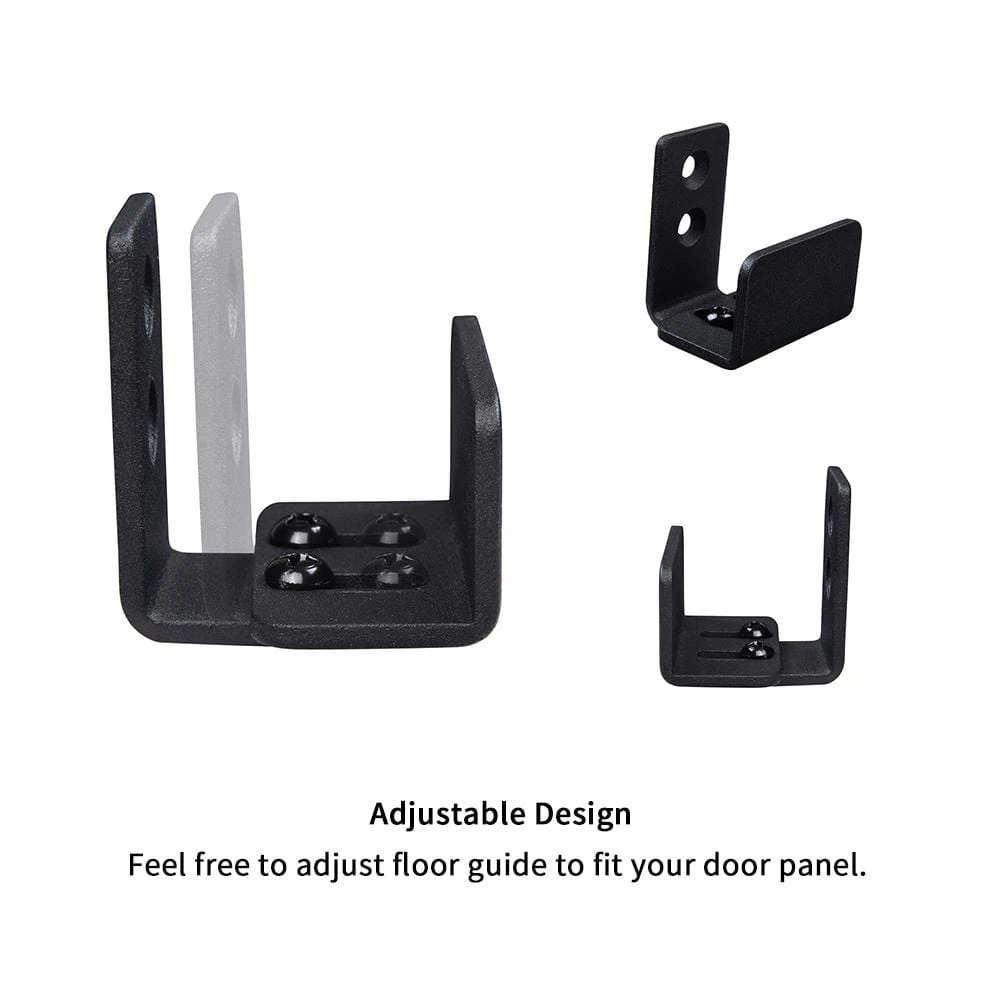 This barn door floor guide is made of high-quality carbon steel and pom nylon. Anti-rust with a frosted black finished surface. Durable floor guide prevents the door from swinging during the movement and keeps it in balance and stable.