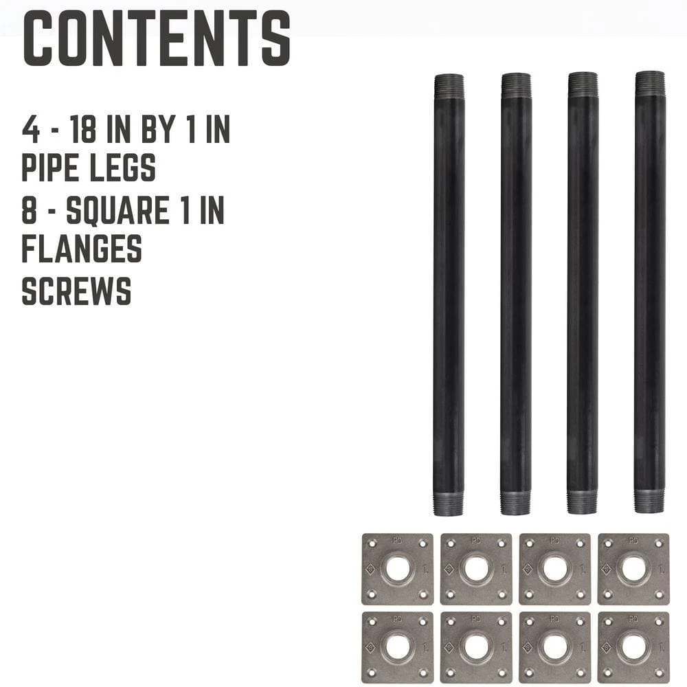 - Each kit contains (4) 1 in. x 18 in. pipes, (8) 1 in. square flanges, (16) screws, instructions and a clean and seal sheet