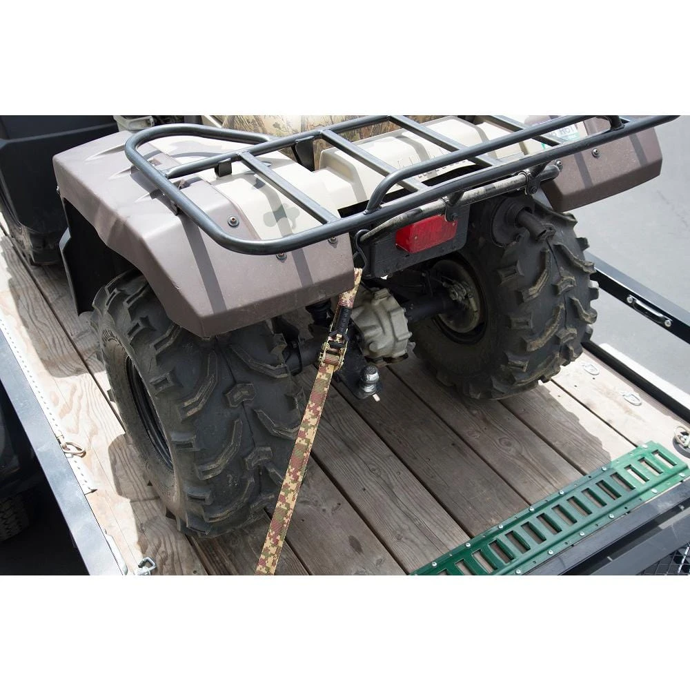 Keeper tie-downs are designed to fit the application, so you have the right tool to meet your needs. Ratchet tie-downs with mini pistol grip handles secure your cargo with maximum tension and minimum force, perfect for situations when you need proven dependability. These tie-downs are perfect for ATVs, hunting, fishing and camping. The spring-loaded release mechanism guards against accidental release, combining safety with performance. With a 500 lbs. Working Load Limit and 1,500 lbs. Break Strength, Hi-Test webbing in Desert Camo provides outstanding strength and withstands even the toughest applications. The webbing resists abrasion and the compact, non-marring vinyl coated S-hooks won’t rust, so you can rely on Keeper ratchet tie-downs to meet or exceed your light cargo needs.