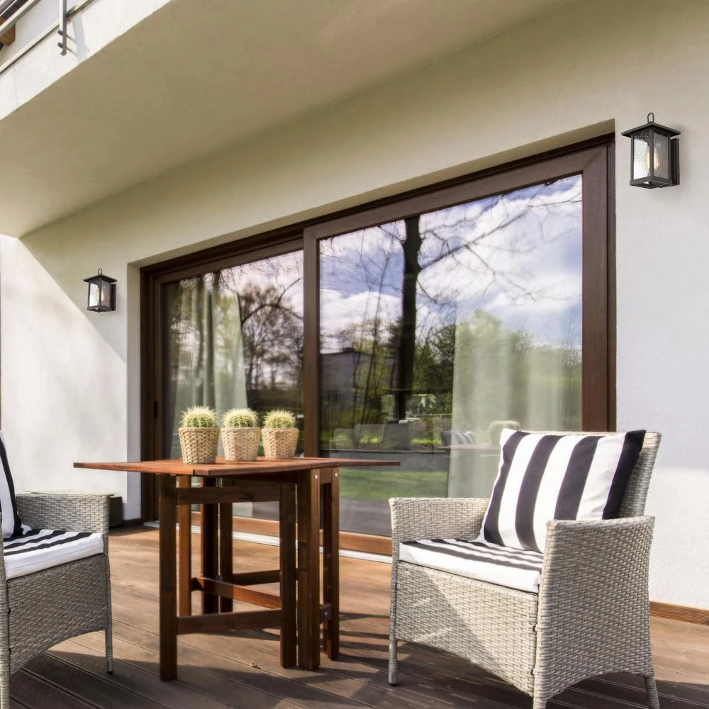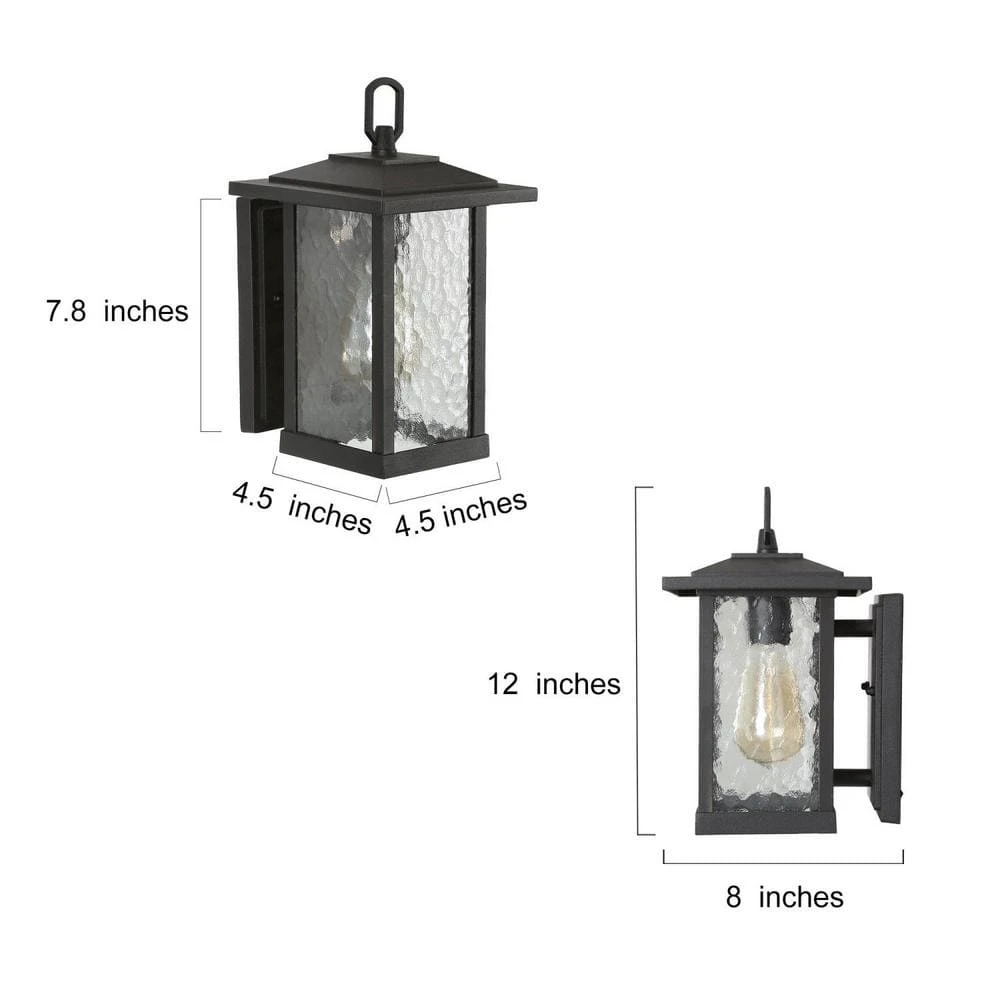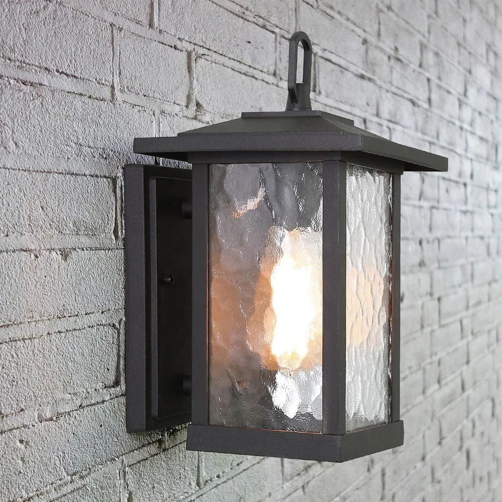 Help simply the process of creating a home you love with the charming character of the 1-Light 12 in. H Wall Lantern. A modern lantern silhouette attaches to a textured black backplate that makes the versatile design compatible with a variety of exteriors and interiors. Cylindrical water glass shades gently diffuse the light with a wavy flowing pattern, adding a pinch of unexpected visual interest that grants a nod to modern farmhouse style inspiration. Certified by UL for proven durability without compromising function and aesthetic value. Ideal for any outdoor environment – completely weather resistant and constructed of sturdy metal to withstand the elements. The black finish wall light fixture is made by high quality aluminium alloy, which effectively prevent this decorative outdoor sconce from rustiness or corrosion. That means the black exterior light fixture will keep its stylish looking for years. A great outdoor addition to your porch, patio, balcony, front door, garage, entryway or corridor.