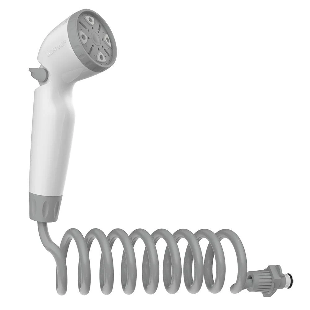 Rinse the dog, a child, the shower or anything else with the only system that does it all in a snap. Simply install the enclosed shower connector 1 time and then snap on the extra-long 8 ft. hose easily, any time. There is no need to remove your showerhead after that, making Snap N Spray Detachable 8 ft. Sprayer the fastest, most convenient way to rinse.