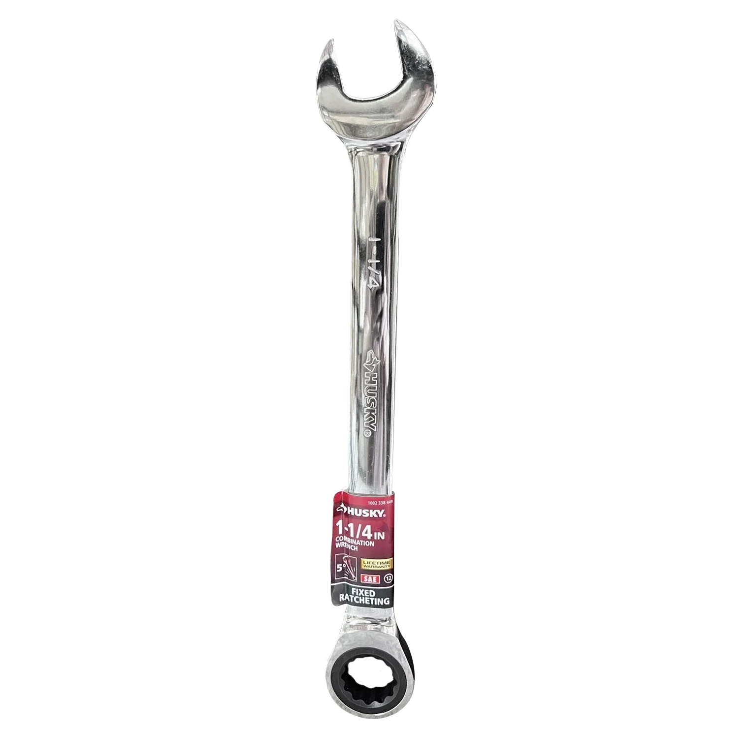 Husky’s ratcheting combination wrenches feature a 12-point, 72-tooth ratcheting box end that needs only 5-degree to engage fasteners. Each wrench is manufactured from Chrome Alloy steel and heat treated for added strength and wear protection; providing durability for a lifetime of hard use. Their polished chrome finish resists rust and corrosion and easily wipes clean of oil and dirt. Both the open and box end features chamfered lead-ins for quick and easy placement onto fasteners every time.