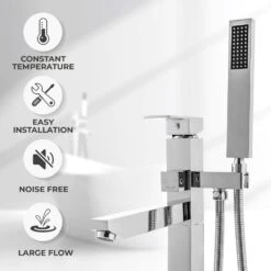 1-Handle Freestanding Floor Mount Roman Tub Faucet Bathtub Filler With Hand Shower In Chrome